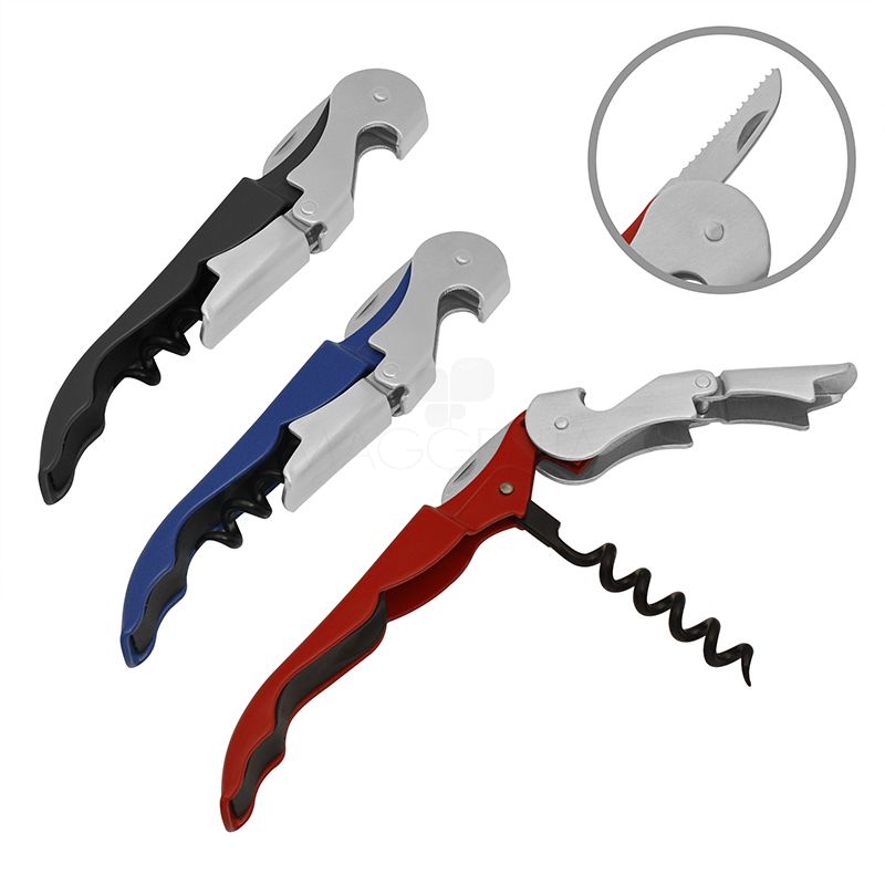 Saca-rolhas em metal e PP com abridor de garrafas e canivete de sommelier. Espiral em aço inox. 121 x 20 x 12 mm
